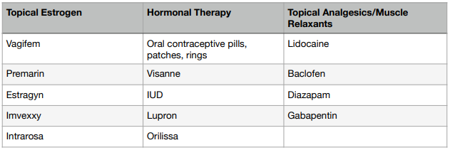 Your therapist may be able to identify if further intervention is needed based on both your subjective and objective assessment. We assess the colour, lubrication and tissue integrity of the vulva/vagina. We can gather information that may indicate more medical causes of dyspareunia, such as low estrogen due to breastfeeding or menopause, in which the tissues appear pale, atrophied and/or dry. These clients may benefit from topical estrogen. Based on our subjective history taking, we can get information that may indicate that a client could be dealing with endometriosis. These clients may benefit from hormonal therapy to control their endometriosis symptoms. Alternatively, if we’ve been working with a client for a while and they have not progressed as expected when it comes to muscle tone and nerve sensitivity, we may refer the client back to their general practitioner to discuss incorporating topical analgesics/ muscles relaxants