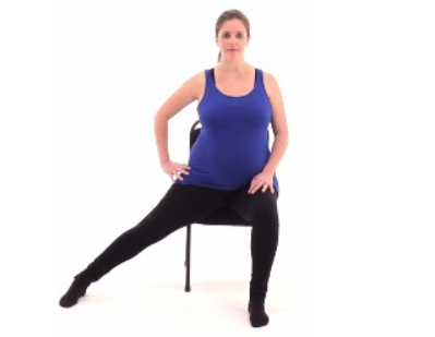 Adductor Stretch - Sit upright on the edge of a chair with feet flat on the floor, wider than hip-width apart. Place your hands on your thighs or the chair for support. Keeping your back straight, extend one leg out to your side, feeling a gentle stretch along the inner thigh. Keep your hips stable and avoid rounding your back. Hold for 15-30 seconds, breathing deeply, then return to the starting position. Repeat on the other side.